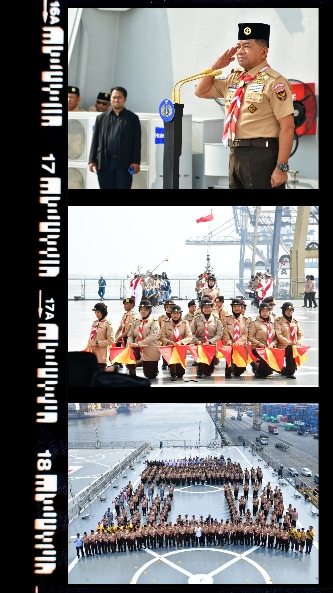** Tingkatkan Semangat Bela Negara dan Cinta Tanah AirDalam rangka meningkatkan semangat bela negara, cinta tanah air yang berwawasan kebangsaan bagi generasi muda, TNI AL menggelar Apel Gabungan Pramuka Saka Bahari Nasional Tahun 2025 bertempat di atas Geladak Helly KRI Banda Aceh-593, Dermaga Kolinlamil, Tanjung Priok, Jakarta. Selasa (29/04).