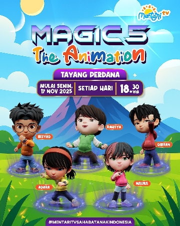 Saksikan tayangan perdana “Magic 5 The Animation” mulai Senin, 17 November 2025, setiap hari pukul 18.30 WIB hanya di MentariTV dan Vidio. Nikmati keseruannya sambil bernyanyi bersama lagu “Magic 5 Beraksi” persembahan Sridevi DA, Eby DA dan Afan DA, yang akan membuat sore hari anak-anak Indonesia semakin berwarna dan ceria.